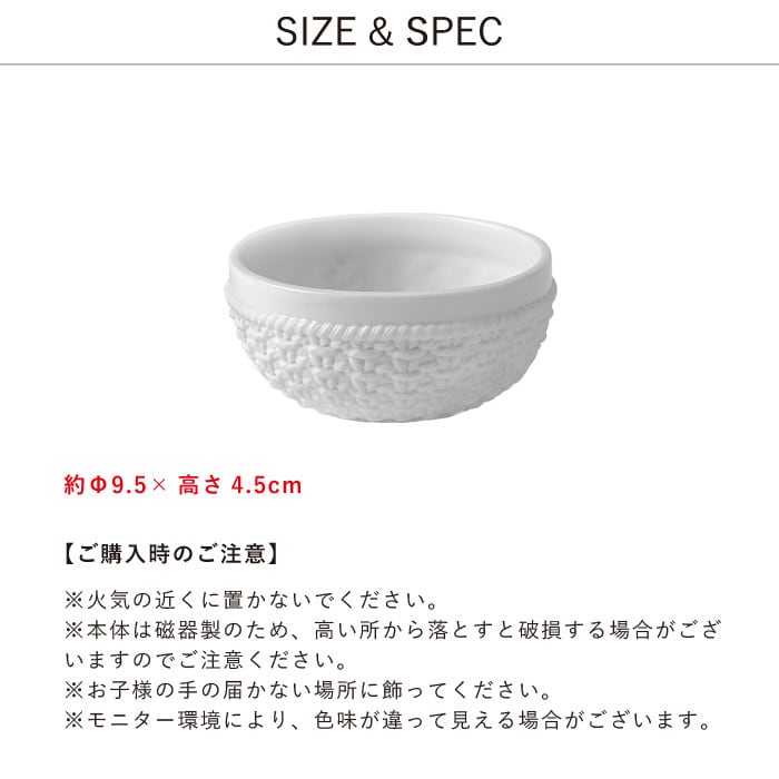 リアルなニット模様が印象的なボウル型の小物入れ。本物の編み物のようにデコボコした手触りです。