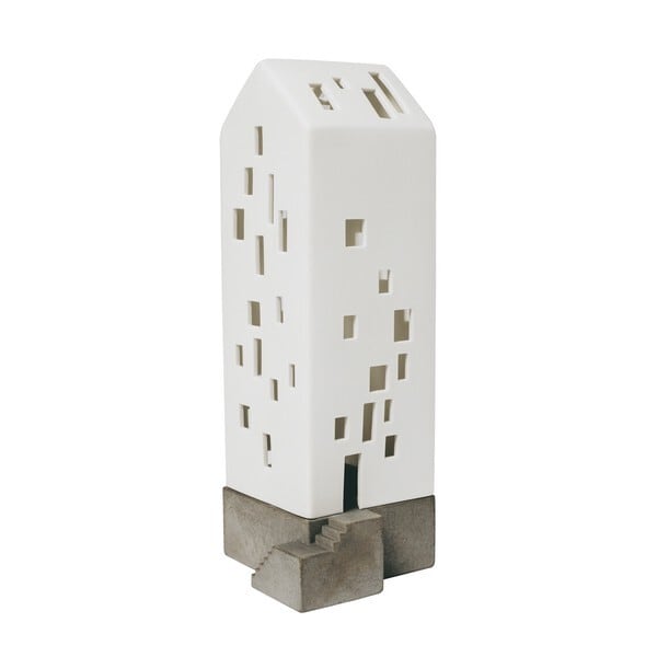 コンクリートの土台が付いたハウス型の磁器製キャンドルホルダー。