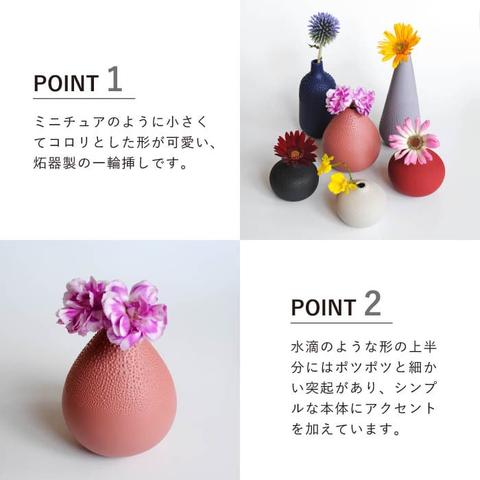 ミニチュアのように小さくて、コロリとした形が可愛い、一輪挿しです。