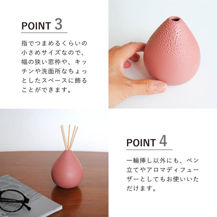 一輪挿し以外にも、ペン立てやアロマディフューザーとしてもお使いいただけます。